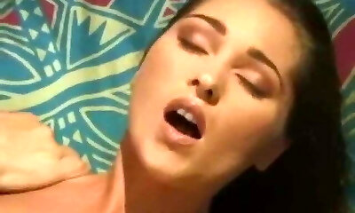 Busty antique dark haired gets rid of bikini and masturbates in front of the dude
