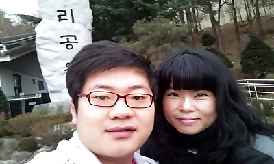 Amateur Korean couple fucks in classic missionary stance on camera