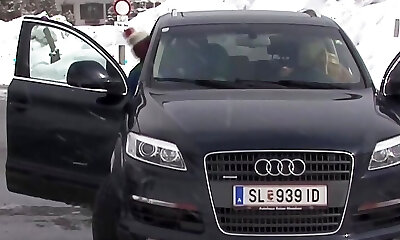 Big-chested German lady gets humped by a loaded BBC in the outdoors