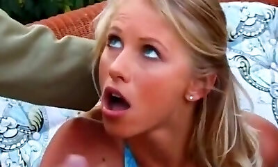 An astounding German blonde gets her face covered with cum