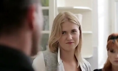 Blonde teen from France gets smashed by 2 hard rods
